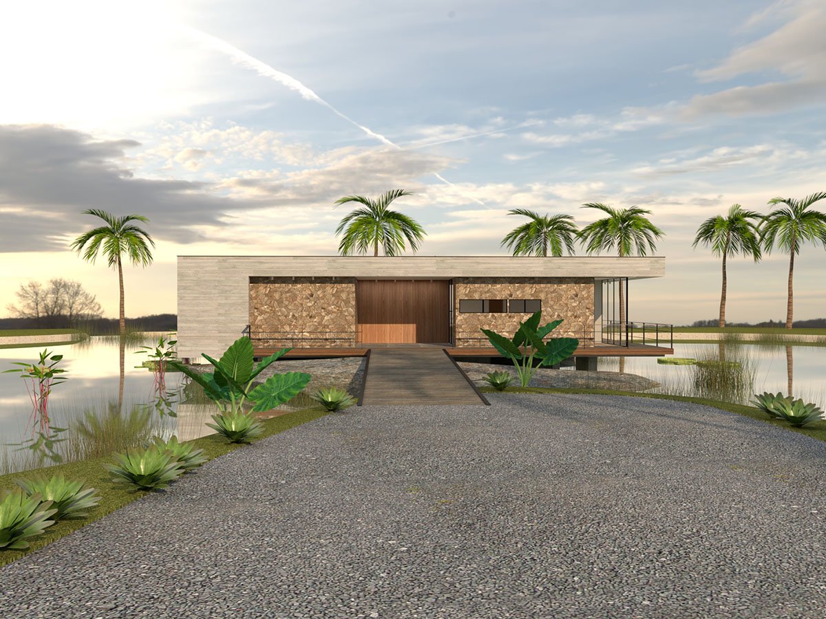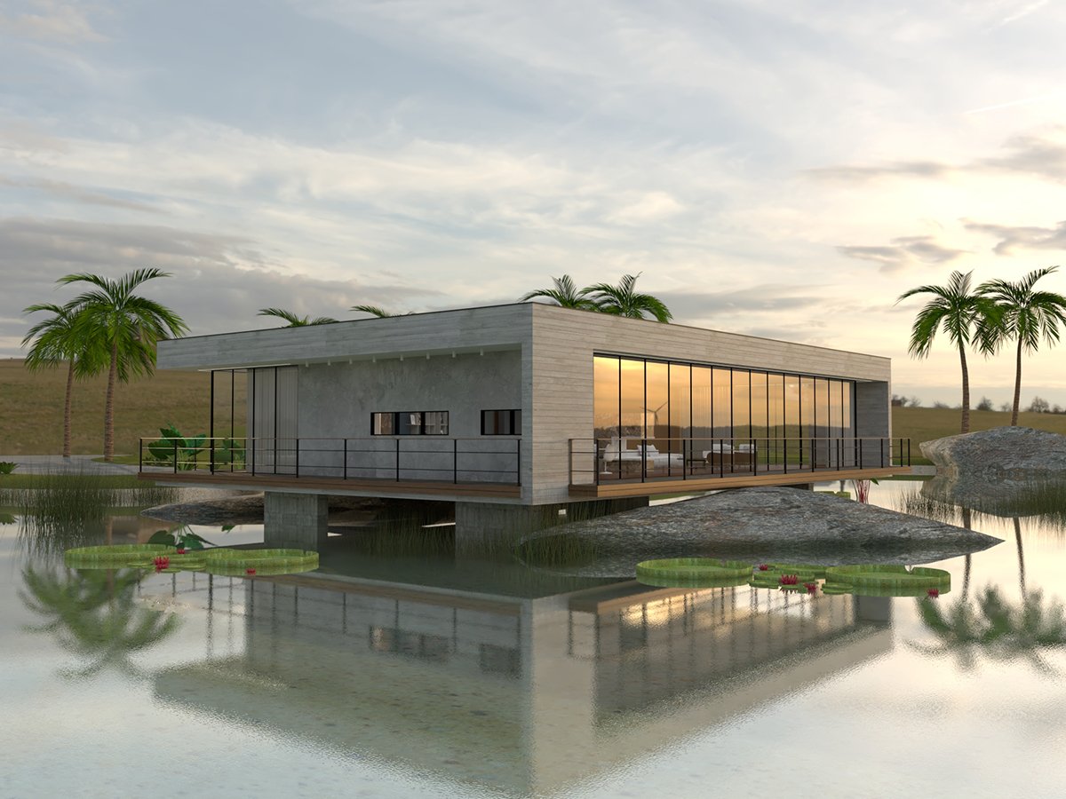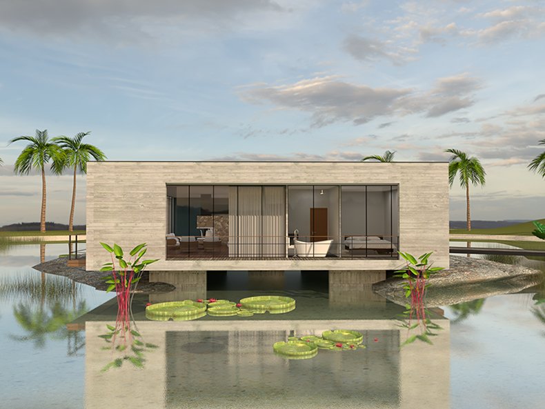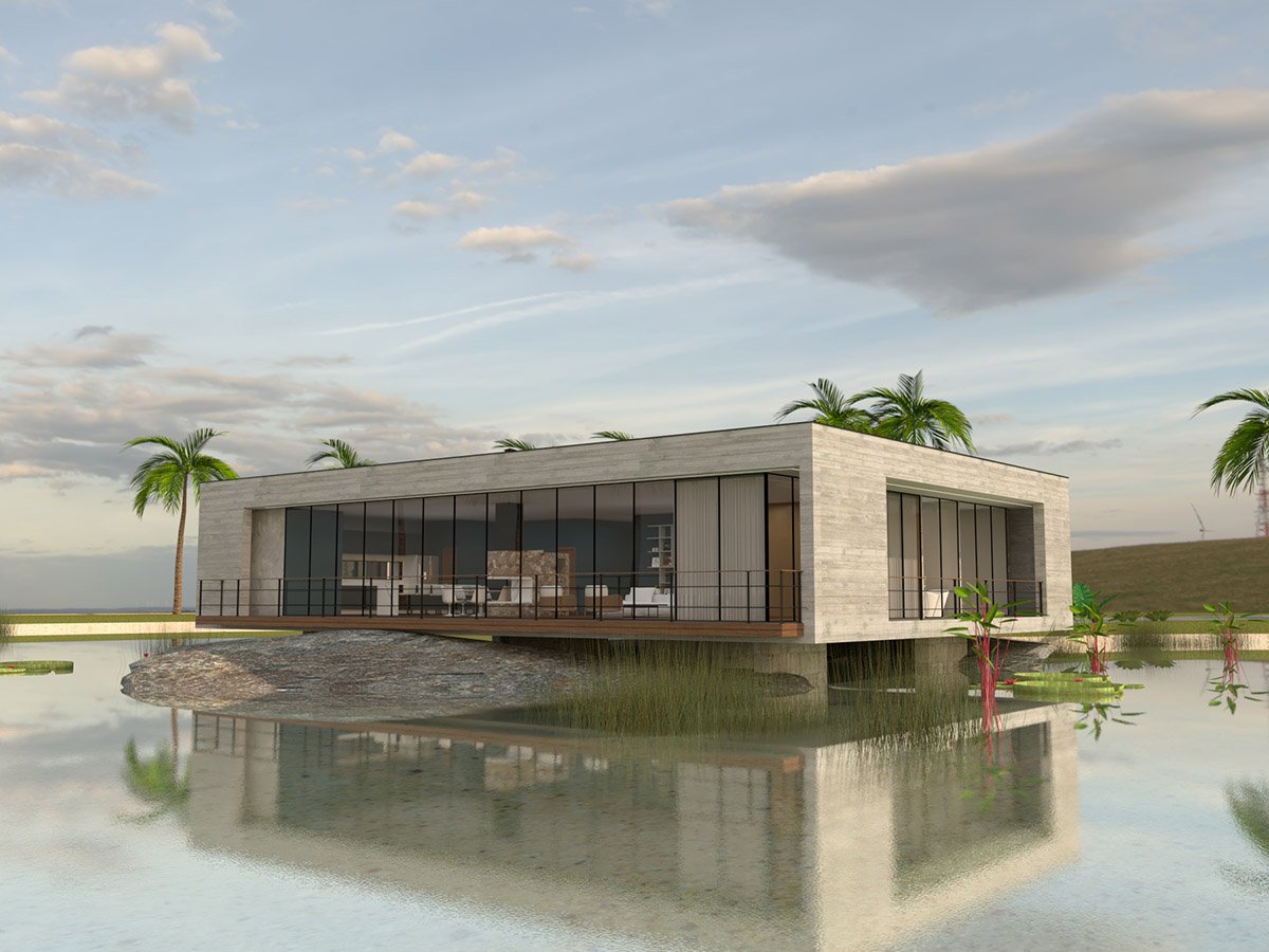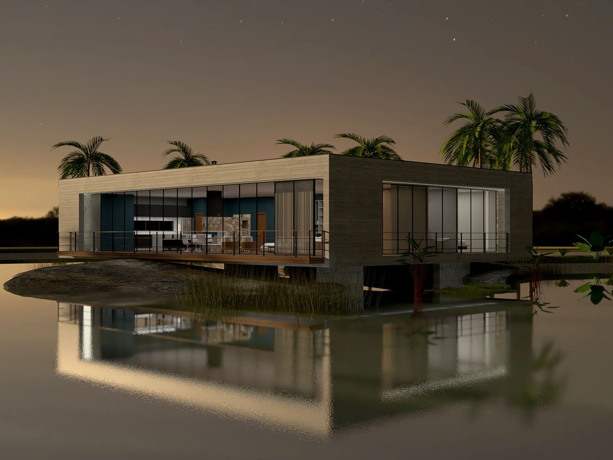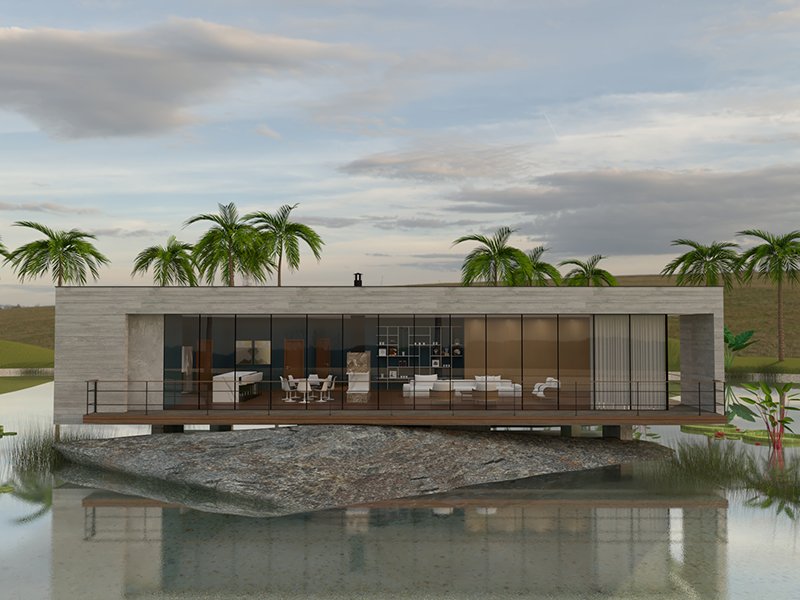 A Casa do Lago foi projetada dentro de um lago artificial ornamental. Uma casa inteligente, leve e moderna.