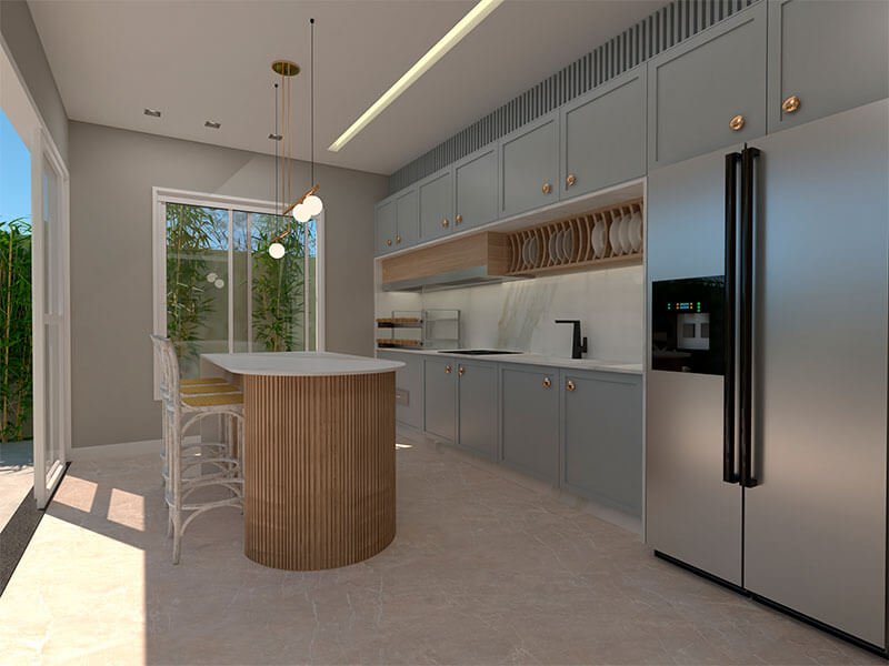Neste Projeto de Arquitetura de Interiores buscamos uma leveza que vai além da estética, que permeia entre o bom aproveitamento dos visuais, materiais e soluções práticas.