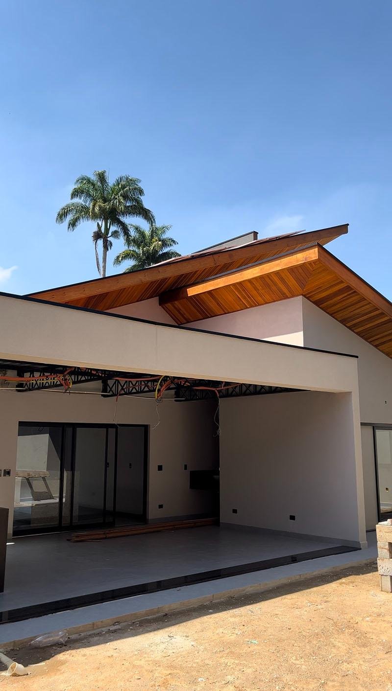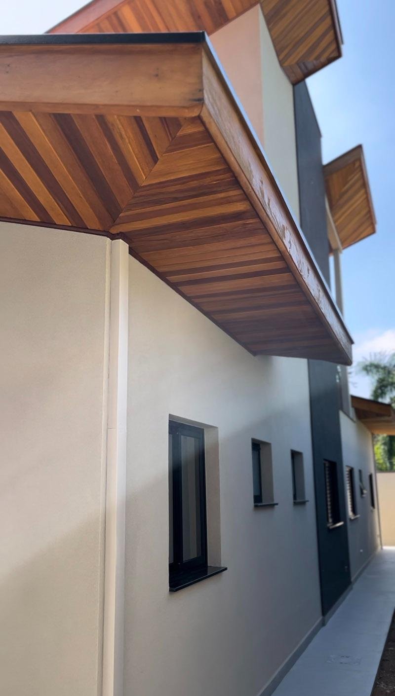 O telhado aparente foi umas das solicitações especiais dos clientes, um estilo contemporâneo com aquele charme rústico