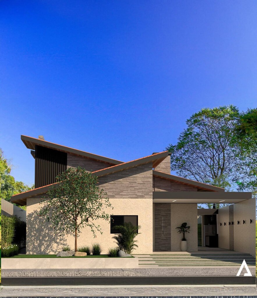 Os clientes fizeram alguns pedidos especiais que nortearam o desenvolvimento desse Projeto como: telhados aparentes, o mínimo de degraus possível para garantir maior fluidez na áreas comuns… e este foi o resultado!