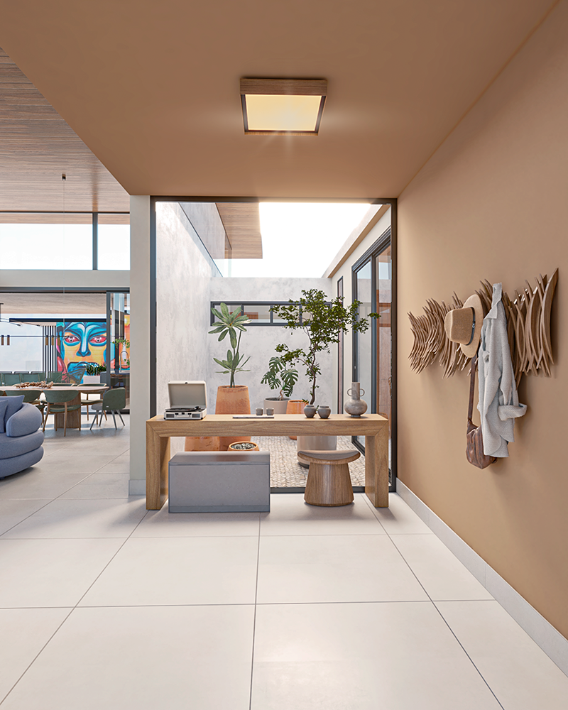 Neste Projeto de Arquitetura de Interiores buscamos uma leveza que vai além da estética, que permeia entre o bom aproveitamento dos visuais, materiais e soluções práticas.